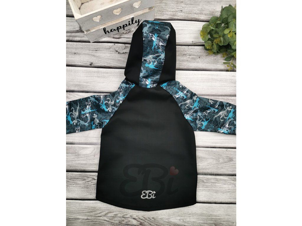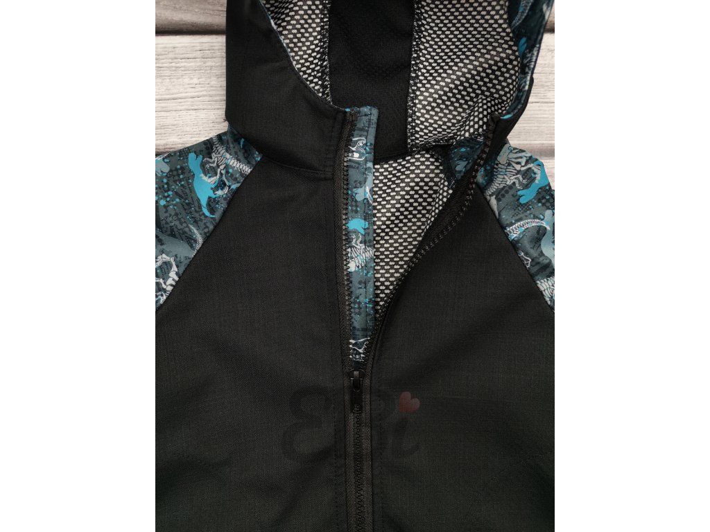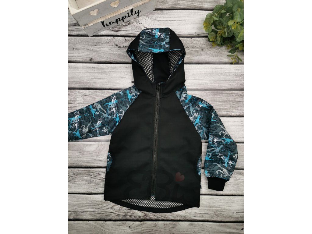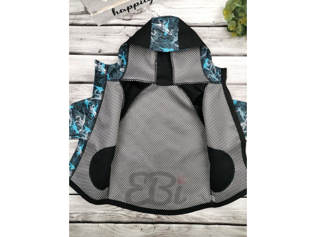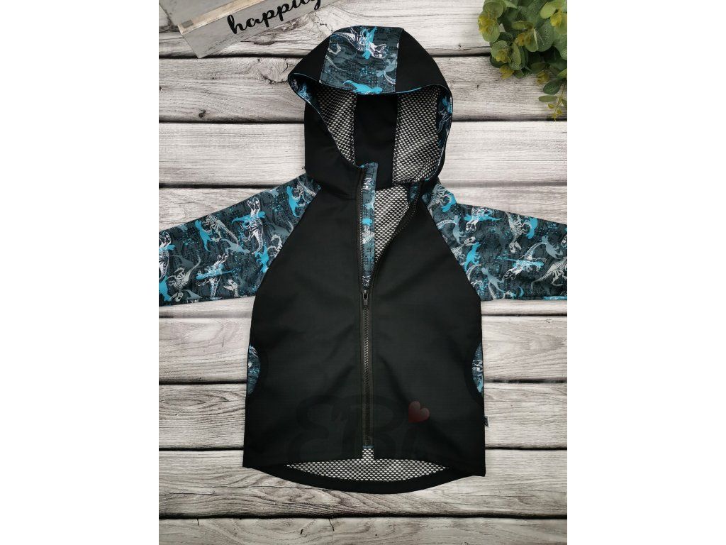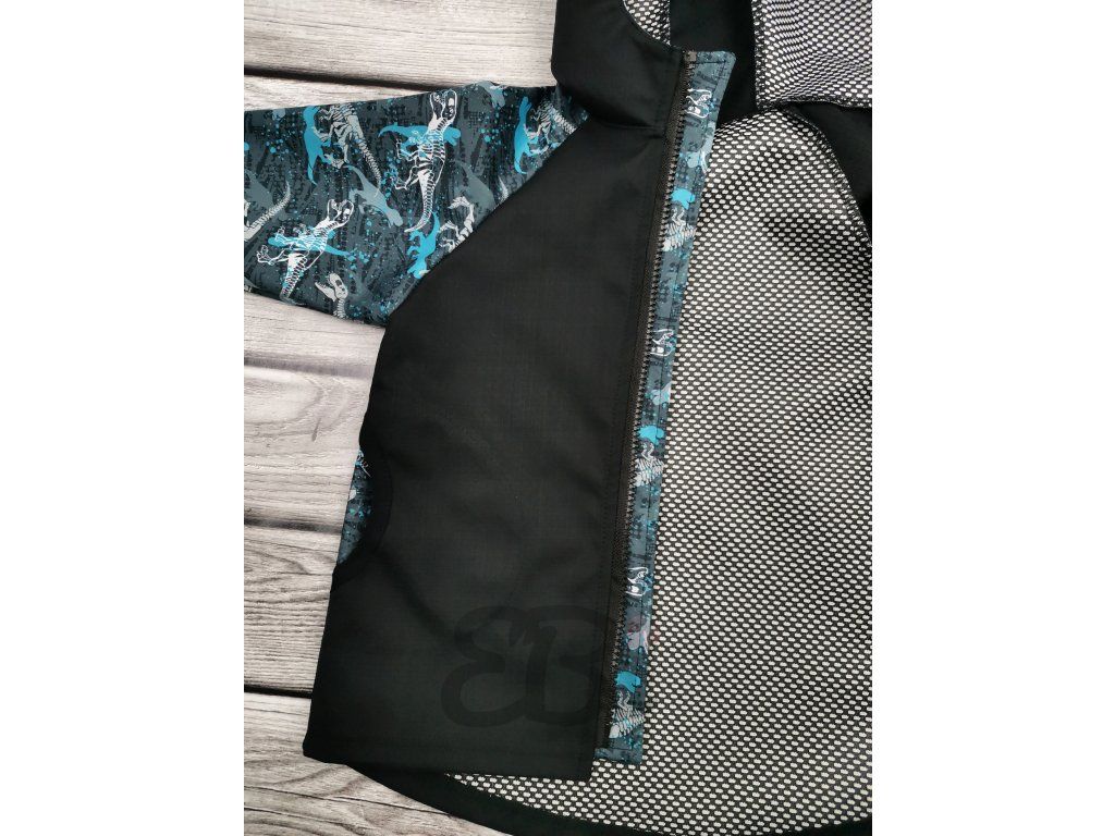 Soft. bunda jaro-podzim s mřížkou, Modrý Dino