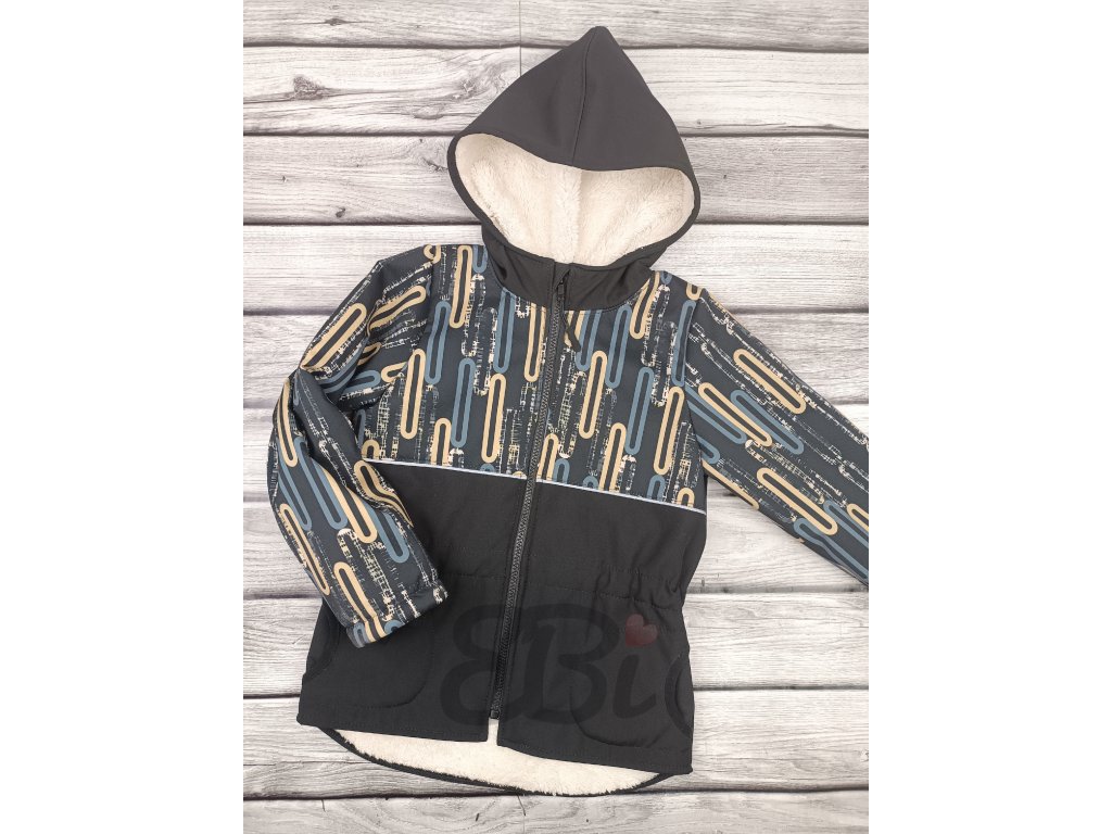 Bunda s kapucí a kapsami, rukáv ukončený do nápletu. Zadní část prodloužená s reflexním prvkem . Softshell má rub z beránka.