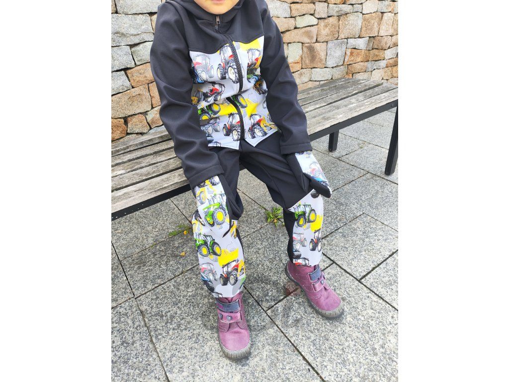 Softsellový komplet s fleecem - Traktory a bagry