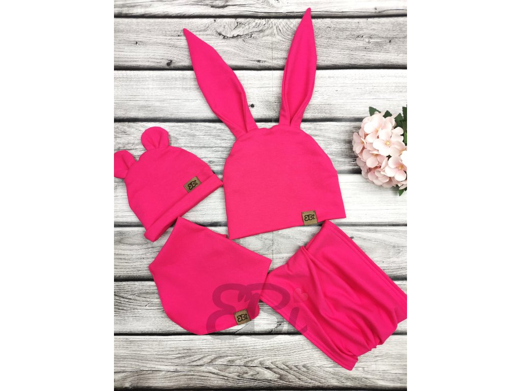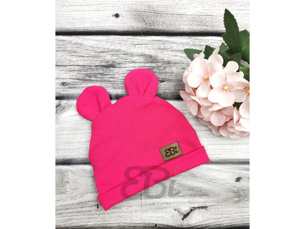 Čepička s oušky, neon pink