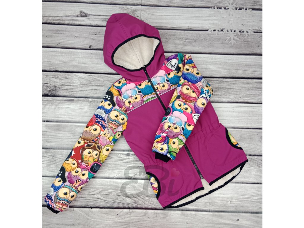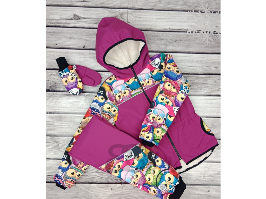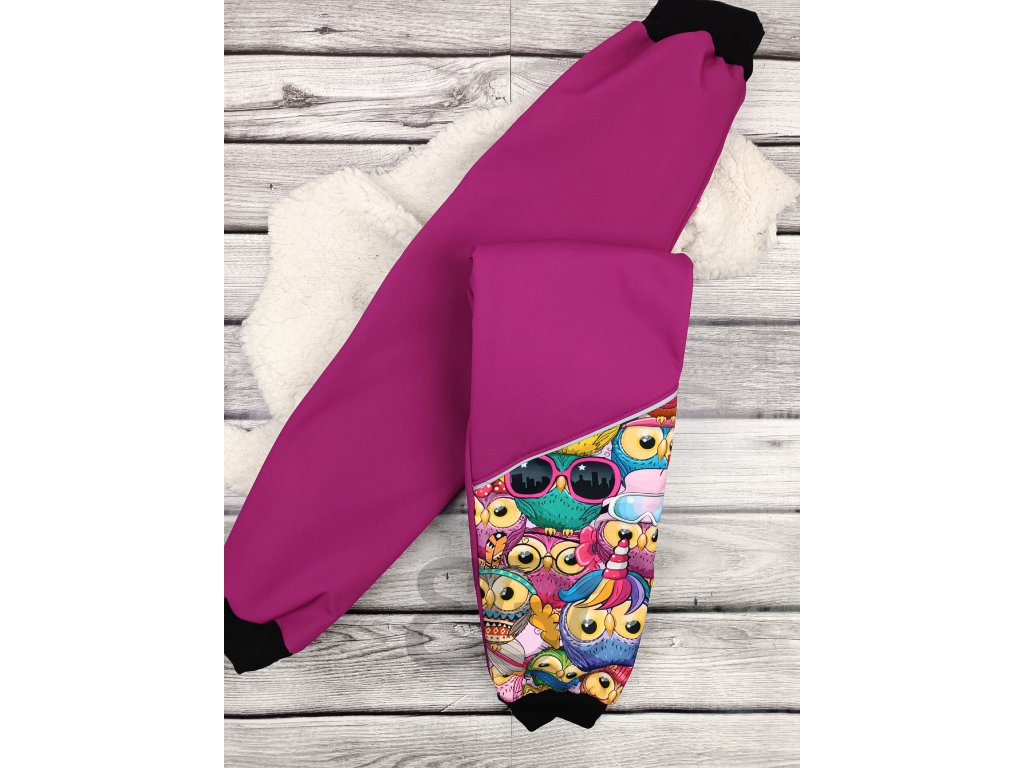 Zimní softshellové kalhoty s BERÁNKEM fialové -barevné sovy