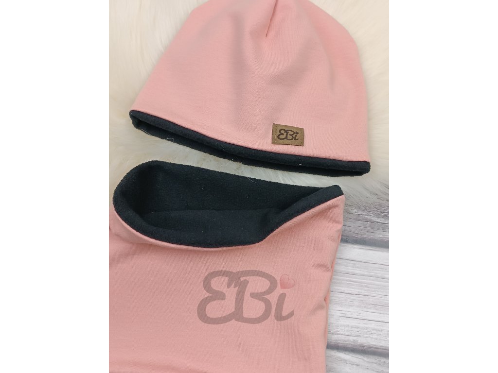 Set - černá zimní čepice s nákrčníkem - Růžová