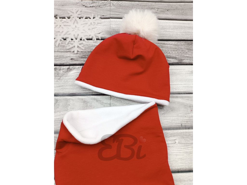 Set - černá zimní čepice s nákrčníkem - Viva magenta s bambulí