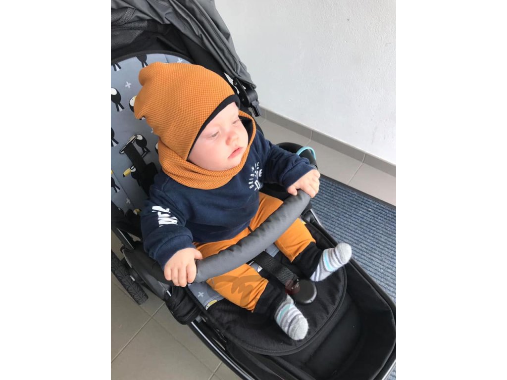 Set - zimní čepice a nákrčník - Hořčice 3D